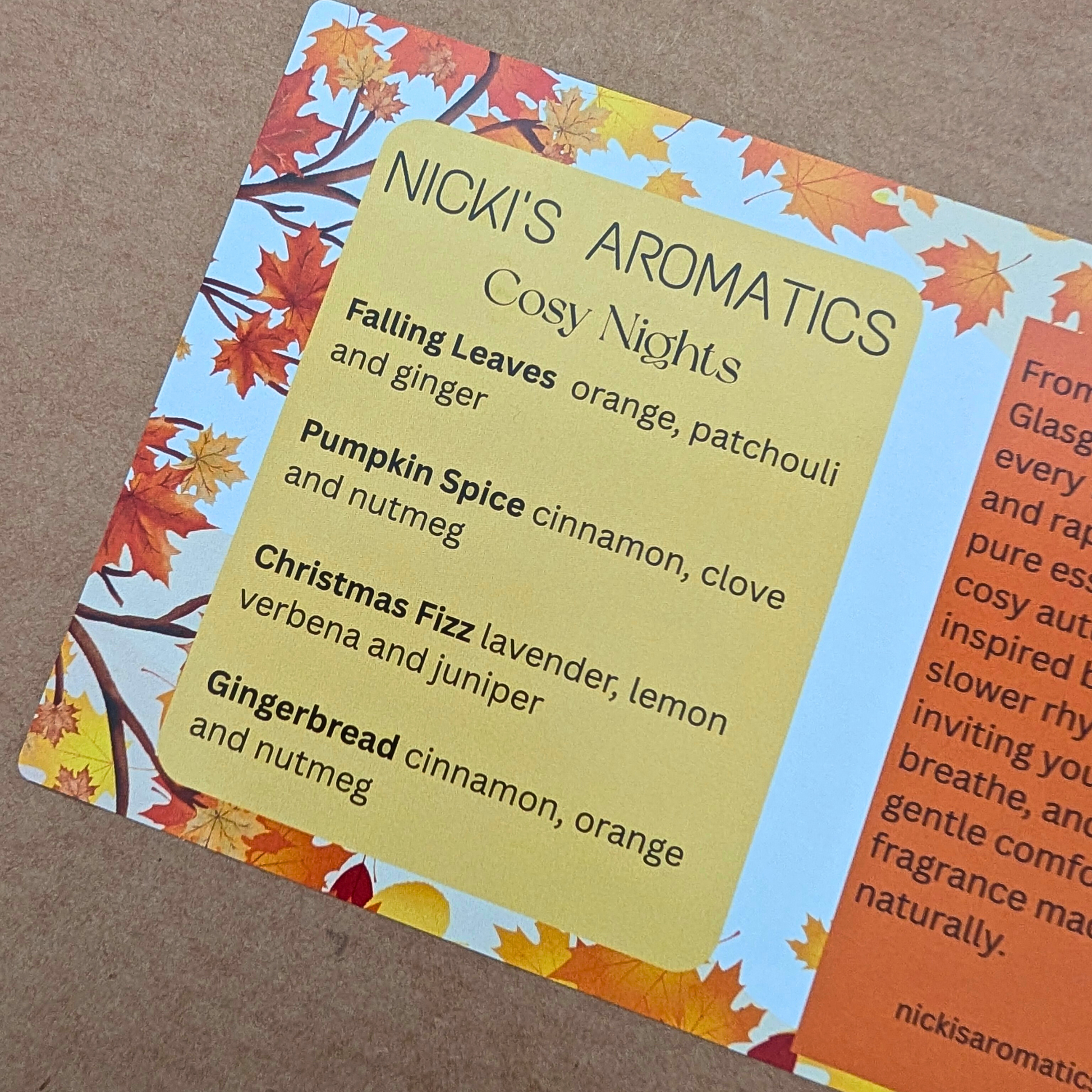 Settle into the season with our Cosy Nights Wax Melt Selection Box - four comforting blends chosen to make your evenings feel warm, festive, and full of charm. Each biodegradable bag holds five hand-poured melts, crafted with natural essential oils and coconut–rapeseed wax for a clean, gentle fragrance throw.